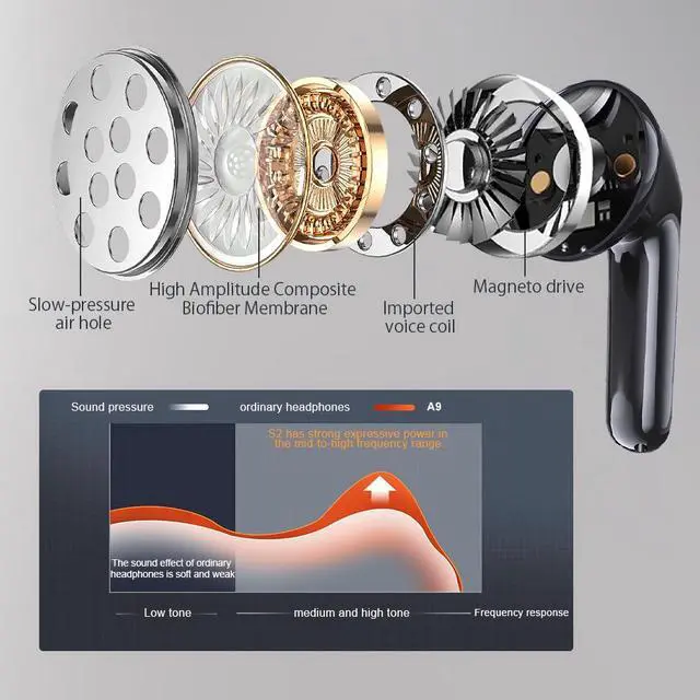 360° Superior Sound QualityFrom powerful bass to natural midrange and effortless highs, Insbes wireless earbuds faithfully reproduce the original sound. Acoustic Engineering TechIt creates a clear and natural wide soundstage, delivering deep bass stereo sound that makes you feel like you're at a live concert. 13mm large-diameter audio drivers utilize high-amplitude composite biofiber diaphragms.