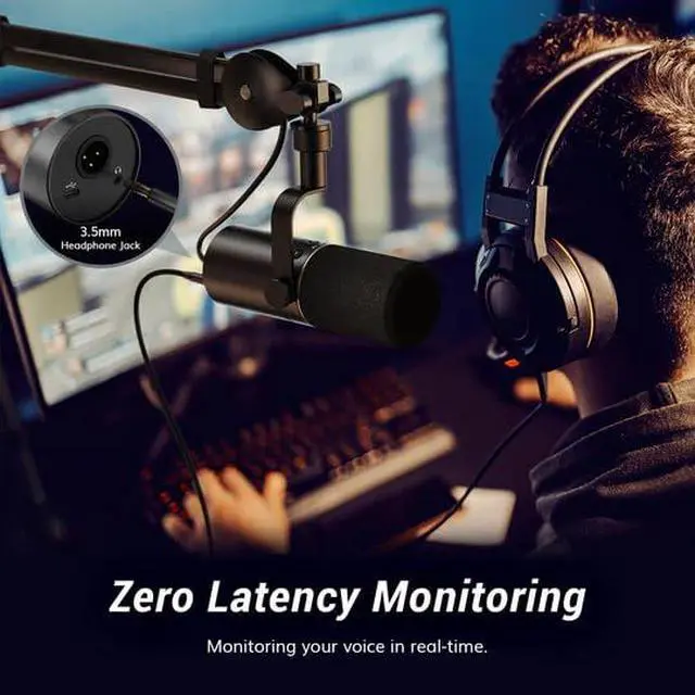 Support 3.5mm headphone plug connection, monitoring your vioce in real-time.