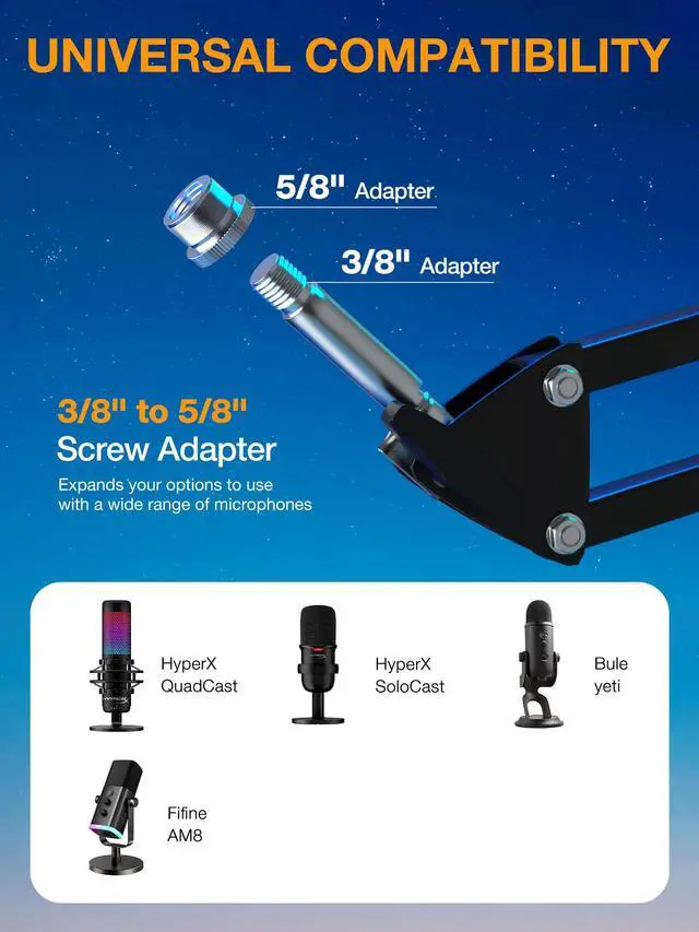 Compatible with various models of microphones, For example: HyperX QuadCast, Blue Yeti, Blue Snowball, AT2020, HyperX solocast, Shure MV7, Shure SM7B, Fifine K688, Fifine AM8, Rode, Razer Mini, etc.