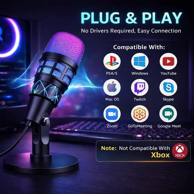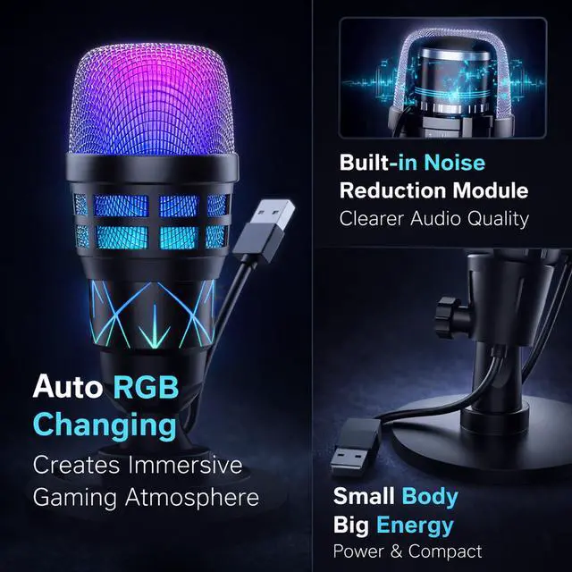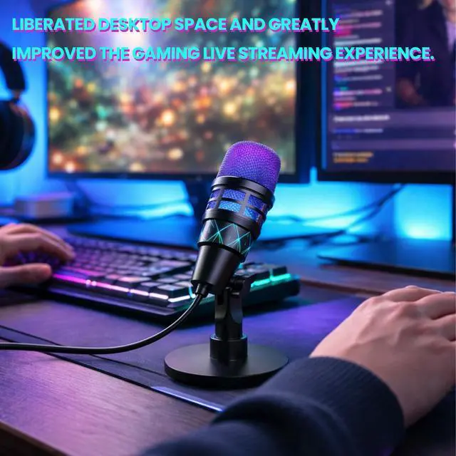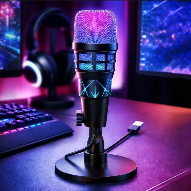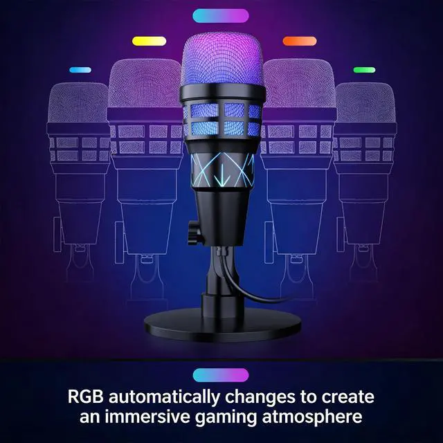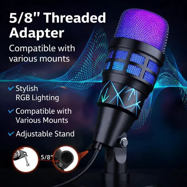 SOEWIOU USB RGB Condenser Microphones, Smart Noise Reduction 5/8" Mount Desk Podcast Mic Ideal for Streaming, Podcasting, Vocal Recording - Compatible with Laptop Desktop, Computer Game