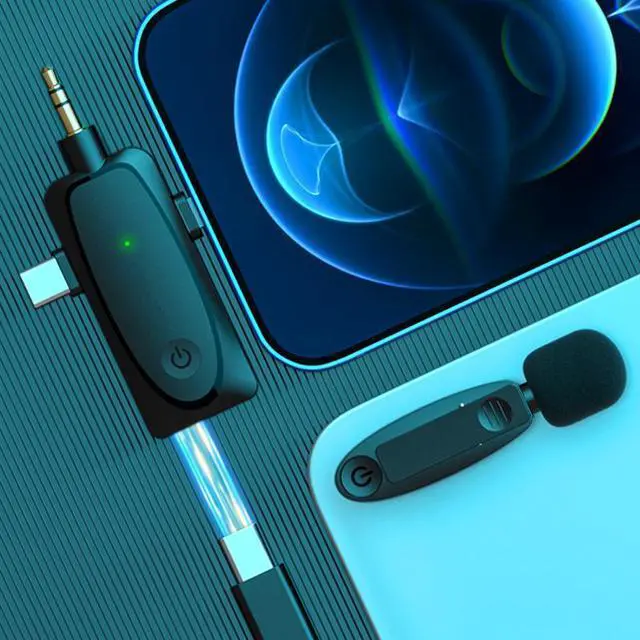 1. 15ms ultra-low latency, 20m barrier-free reception, you can use outdoor live broadcast and small videos. 2. No APP, plug and play, one-key connection, easy to wear. 3. Intelligent noise reduction, long battery life of 7 hours, easy to deal with various noisy environments, worry-free shooting, to meet your day's needs. 4. 360 omnidirectional pickups, record every detail of the sound. 5. Small and convenient, compatible with various devices, support mobile phones, tablets, cameras 6. 1 drag 2, realize interview or two interactive recording 7. 3-in-1 can realize multi-device use