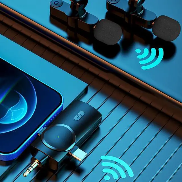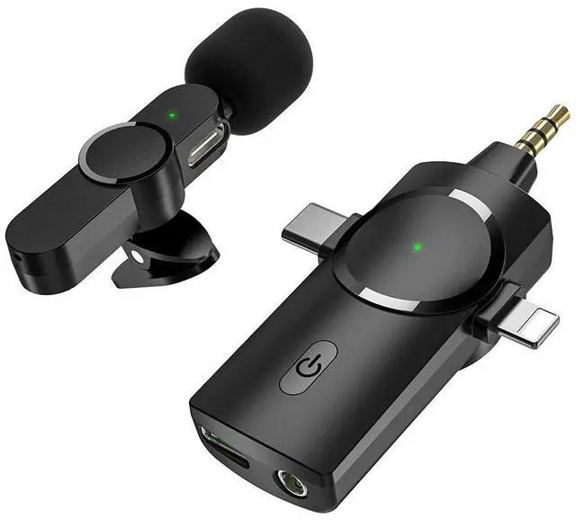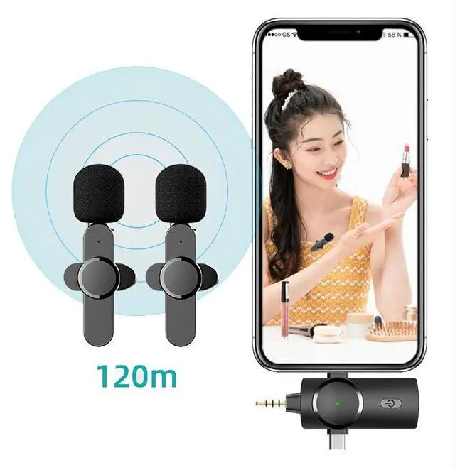 1. 15ms ultra-low latency, 20m barrier-free reception, you can use outdoor live broadcast and small videos. 2. No APP, plug and play, one-key connection, easy to wear. 3. Intelligent noise reduction, long battery life of 7 hours, easy to deal with various noisy environments, worry-free shooting, to meet your day's needs. 4. 360 omnidirectional pickups, record every detail of the sound. 5. Small and convenient, compatible with various devices, support mobile phones, tablets, cameras 6. 1 drag 2, realize interview or two interactive recording 7. 3-in-1 can realize multi-device use