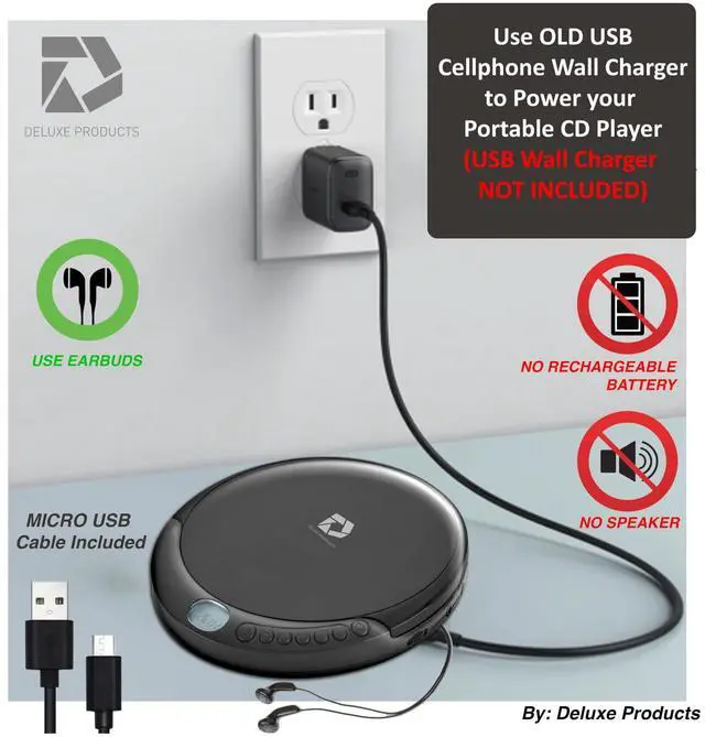 The cd players portable is operated by 2 x AA batteries (not included) or via AC USB Cable Included