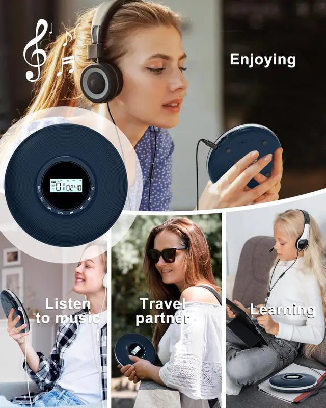 - [Anti-skip, Anti-shock] This portable cd player uses anti-skip technology, allowing you to immerse yourself in your favorite music without any interruption. The personal cd player also has a shockproof function to protect your CD from minor drops and collisions. It provides 15 seconds of CD anti-skip and 40 seconds of MP3 shockproof protection. Let you listen to your favorite music without interruption.