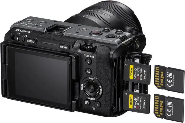 Introducing the smallest Cinema Line camera - optimized for solo movie shooting up to 120p 4K 10-bit 4:2: 2 and ISO up to 409, 600 with S-Cinetone and a compact cage free design featuring ¼-20 mounting points, a top handle with XLR/TRS inputs, uninterrupted recording thanks to a cooling fan for effective heat sink and in-body image stabilization with Active mode for steady handheld shooting.