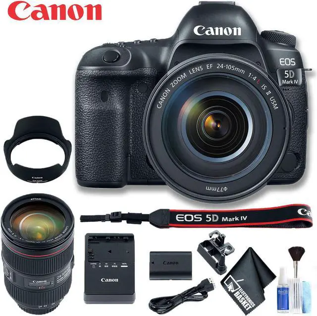 Continuing on in their legacy of powerful workhorse cameras, Canon has released the 5D Mark IV DSLR with 24-105mm f/4L II Lens which is an outstanding still photography option and an able 4K-capable video machine. This multimedia maven offers a newly developed 30.4MP full-frame CMOS sensor paired with the DIGIC 6+ image processor in order to balance fine detail and resolution with low-light performance and sensitivity. It is able to work within a native range of ISO 100-32000, which can then be expanded to an impressive ISO 50-102400, for sharp, low-noise images in a variety of conditions. Along with these improvements to image quality, users will enjoy a performance boost across the board with an enhanced AF system, built-in Wi-Fi, NFC, and GPS, and much more.