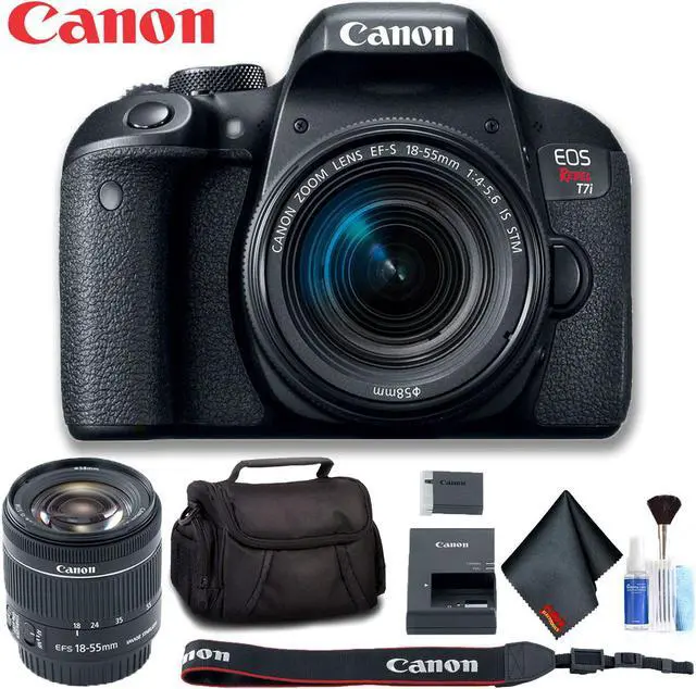 Packing a versatile feature-set in a sleek and portable body, the EOS Rebel T7i DSLR from Canon offers advanced imaging capabilities along with a convenient range of controls and connectivity. Utilizing a 24.2MP APS-C CMOS sensor and DIGIC 7 image processor, the Rebel T7i is able to capture high-resolution stills and video with an expanded sensitivity range of ISO 100-51200 to suit working in a wide variety of lighting conditions. The sensor and processor combination also avails 6 fps continuous shooting for working with moving subjects. Benefitting the imaging attributes, the sensor's design also facilitates Dual Pixel CMOS AF, which uses phase-detection autofocus for quick, accurate, and smooth focusing performance when recording movies or shooting stills in live view. When shooting stills using the optical viewfinder, a 45-point all cross-type phase-detection system is used for quick and accurate focusing in a variety of shooting scenarios.