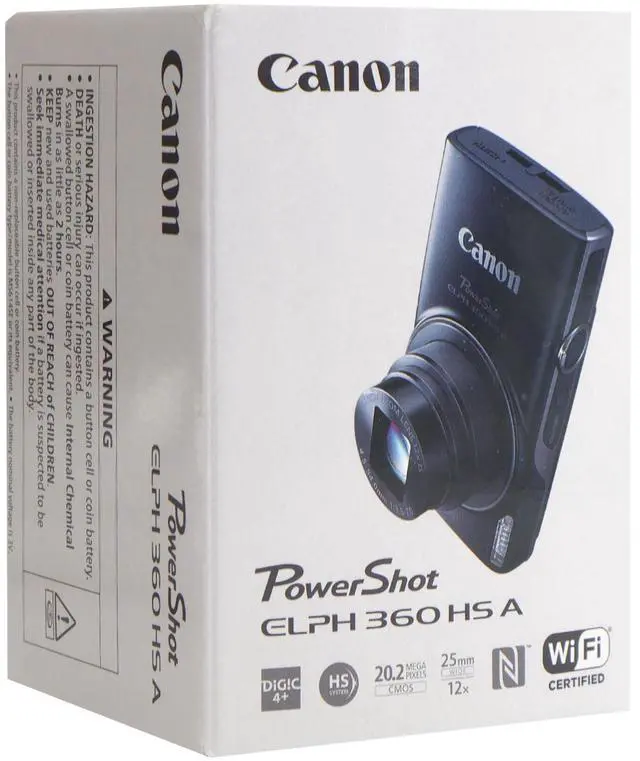 The PowerShot ELPH 360 HS is a slim, stylish camera designed to capture everyday moments with ease. With its 12x Optical Zoom, you can get close-ups or wide shots, whatever you need. The 20.2 Megapixel CMOS sensor and DIGIC 4+ Image Processor make sure your photos are super detailed and full of lifelike color. Plus, the Intelligent IS and Optical Image Stabilizer help you get sharp images with minimal blur. If you want to record a movie, you can do that at 1080p Full HD resolution on a clear 3.0 -inch LCD screen.