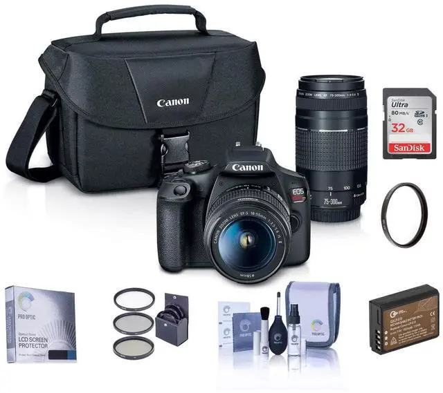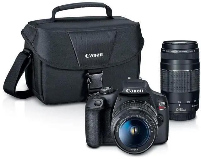 Canon EOS Rebel T7 DSLR Camera EF-S 18-55mm and EF 75-300mm Lens W/Essential Kit