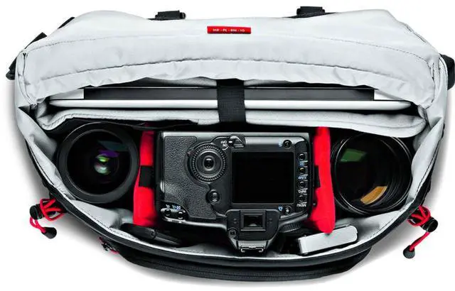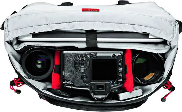 Protection is paramount with the Manfrotto Camera Protection System (CPS), which provides a safe haven for your gear. The bag comfortably houses a CSC/DSLR body with a 24-70/2.8 lens attached, plus two additional lenses, including a 70-200/2.8, and a range of accessories. The innovative design also accommodates a gripped DSLR kit when you're traveling without a laptop.