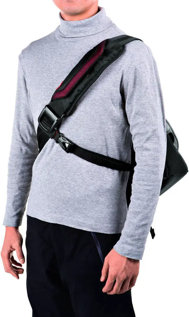 Experience unparalleled comfort with the AirSupport back and harness system, which distributes weight evenly across the long and wide shoulder pad and promotes airflow with its mesh channel. Adjust the shoulder strap length in an instant with the EasyGrip buckle, enabling swift cross-body movement for those critical shots.