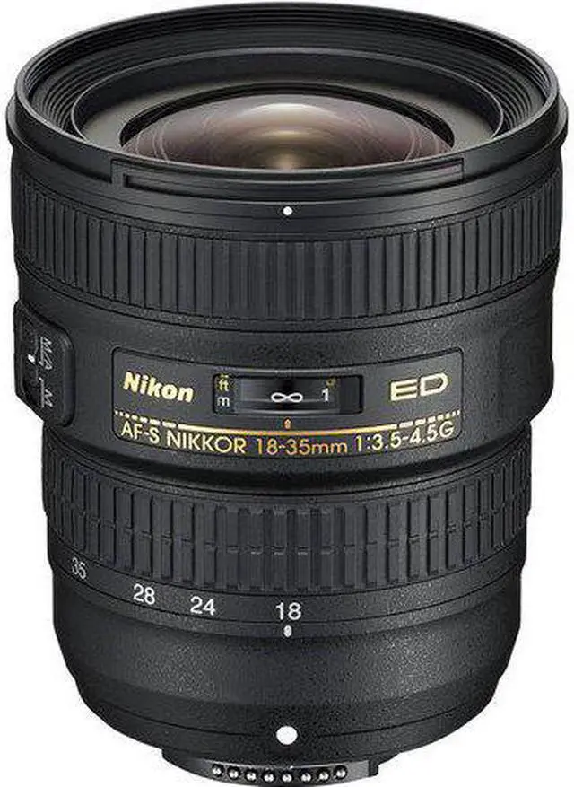 Use it everywhere Wide-angle to standard zoom versatility The AF-S NIKKOR 18-35mm f/ 3.5 - 4.5G ED is an excellent travel and all-purpose lens. Its 18mm wide-angle perspective brings more of what you see into the frame, ideal for shooting indoors or in close quarters, capturing architecture and landscapes as well as group portraits. But zoom all the way in, and you get a natural 35mm perspective that mimics the field of view of our eyes, ideal for just about any photo or video application. Excellent for video Ultra-fast, ultra-quiet autofocusing The AF-S NIKKOR 18-35mm f/ 3.5 - 4.5G ED is powered by Nikon's innovative Silent Wave Motor (SWM).