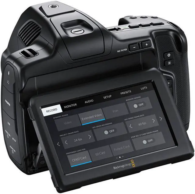 The 6K Pro model takes your filming experience to the next level with an adjustable HDR touchscreen, built-in ND filters, and a larger battery for extended shooting sessions. You also have the option to add an OLED viewfinder for enhanced viewing. This camera is not just a simple video camera; it's a professional tool that lets you create Hollywood-style feature films with high dynamic range, excellent low light performance, and Blackmagic RAW for precise skin tones and vibrant organic colors.