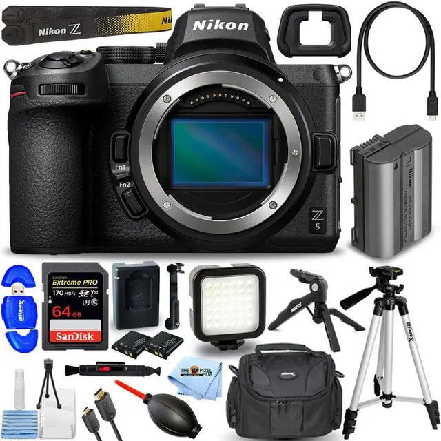 Compact and capable, the Nikon Z 5 is an FX-format mirrorless camera with a well-rounded feature-set to suit both photo and video needs. Its 24.3MP CMOS sensor and EXPEED 6 processor afford wide sensitivity to ISO 51200, quick shooting at 4.5 fps, and UHD 4K video at 30 fps.