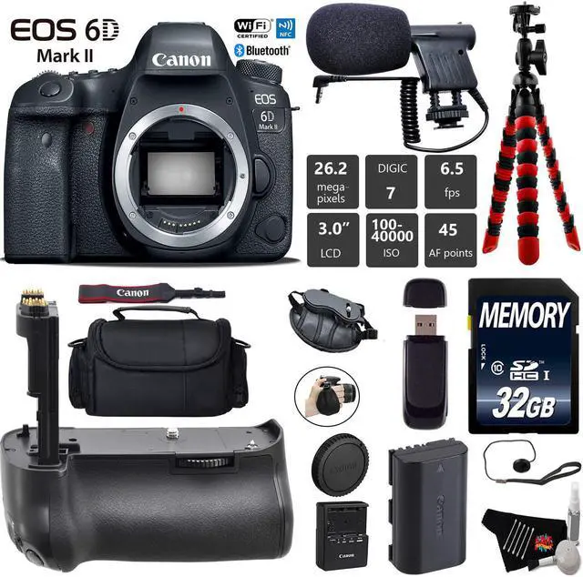 Step up into the full-frame game with the EOS 6D Mark II DSLR Camera from Canon. Making high-performance full-frame imaging more accessible, the 6D Mark II makes numerous advancements over its predecessor to improve upon every aspect of image capture and creation. The main update comes in the form of a 26.2MP CMOS sensor and the use of the DIGIC 7 Image Processor to deliver sharper, more vivid imagery in a variety of shooting situations.