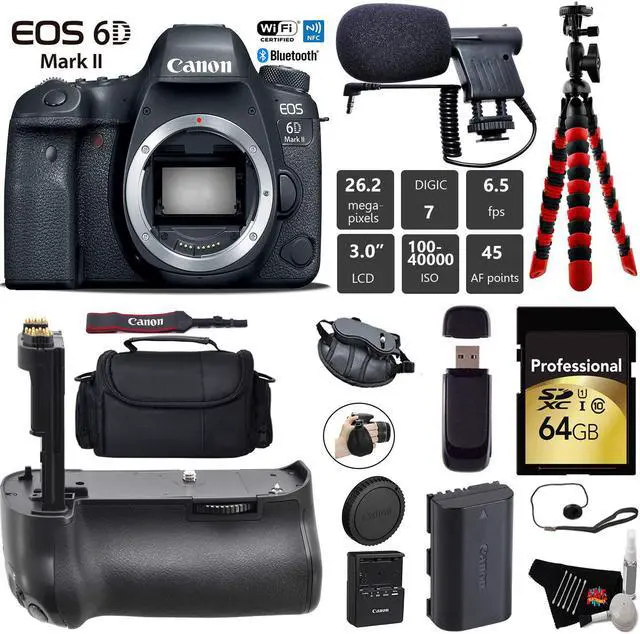 Step up into the full-frame game with the EOS 6D Mark II DSLR Camera from Canon. Making high-performance full-frame imaging more accessible, the 6D Mark II makes numerous advancements over its predecessor to improve upon every aspect of image capture and creation. The main update comes in the form of a 26.2MP CMOS sensor and the use of the DIGIC 7 Image Processor to deliver sharper, more vivid imagery in a variety of shooting situations.