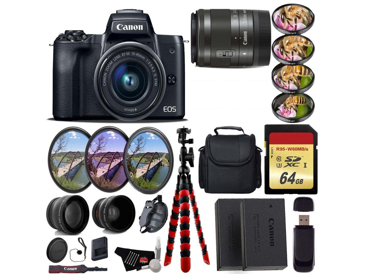 Canon EOS M50 Mirrorless Digital Camera +15-45mm Lens + UV FLD CPL Filter Kit +