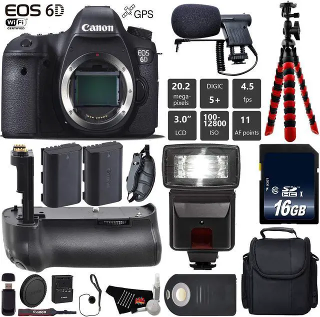 The Canon EOS 6D is a full-frame 20.2MP DSLR offering exceptionally high image quality and detail while providing compatibility and convenience through its design and features. When paired with the powerful DIGIC 5+ image processor and 14-bit A/D conversion, the full-frame sensor is capable of recording vivid imagery with expanded sensitivity up to ISO 102400.