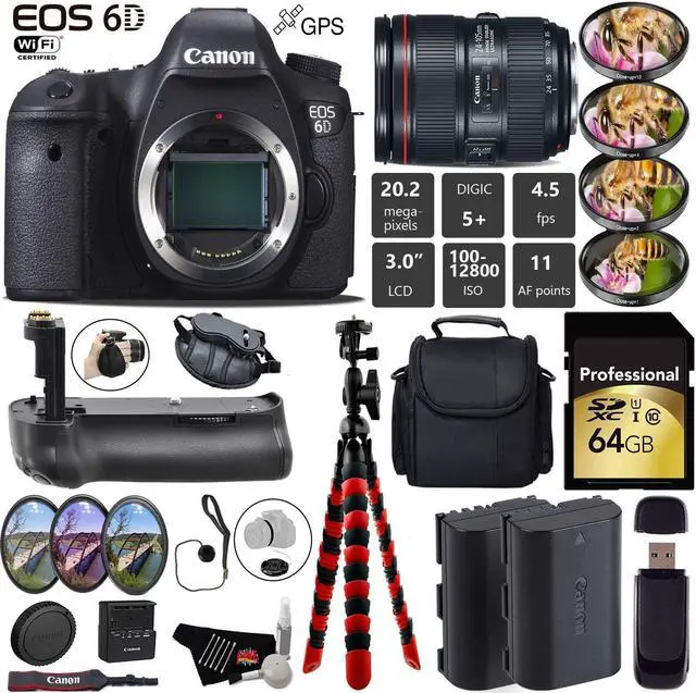 The Canon EOS 6D is a full-frame 20.2MP DSLR offering exceptionally high image quality and detail while providing compatibility and convenience through its design and features. When paired with the powerful DIGIC 5+ image processor and 14-bit A/D conversion, the full-frame sensor is capable of recording vivid imagery with expanded sensitivity up to ISO 102400.
