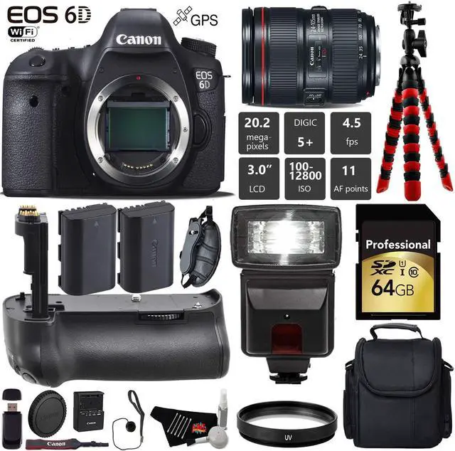The Canon EOS 6D is a full-frame 20.2MP DSLR offering exceptionally high image quality and detail while providing compatibility and convenience through its design and features. When paired with the powerful DIGIC 5+ image processor and 14-bit A/D conversion, the full-frame sensor is capable of recording vivid imagery with expanded sensitivity up to ISO 102400.