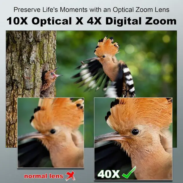 Powerful 40X digital zoom cameras for Photography:The combination of 10x optical zoom and 4x digital zoom can achieve a 40x magnification effect, providing users with a wider shooting angle, even when shooting the moon, it will not be blurry. From charming distant scenery to intricate macro details, it meets diverse shooting needs and presents a more diverse and colorful creative space.