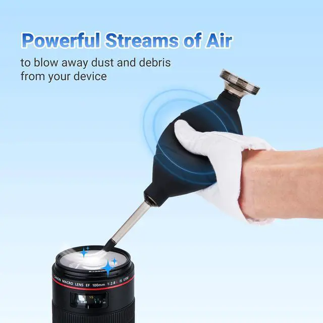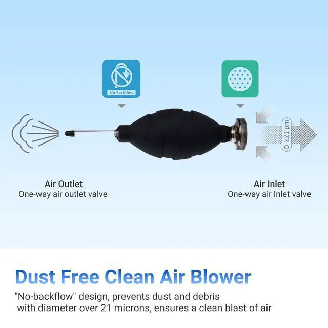 The Dust-free air blower from JJC is a particle-free, clean air bulb system that has dual filters placed in the back and in the front of the blower. Its No-backflow design ensures a clean, strong blast of air, it is a safe and perfect cleaning solution for your digital SLR, lenses, filter, watch, keyboard, calculator, LCD screen, food, green plants, painting and other sensitive electronic equipment.