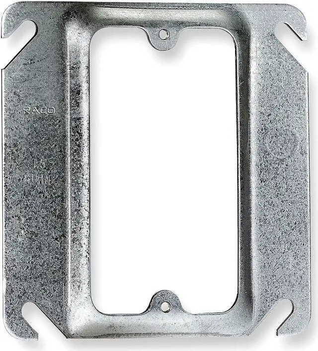 Plaster Ring, Mounting Accessories, Material Galvanized Zinc, Silver Color, For Use With 4 In. One Gang Box, Capacity 1.50 cu. in., Raised Height 1/4 In., Box Type 4, Number of Gangs 1. This item has been restricted from sale in the following state (s): []