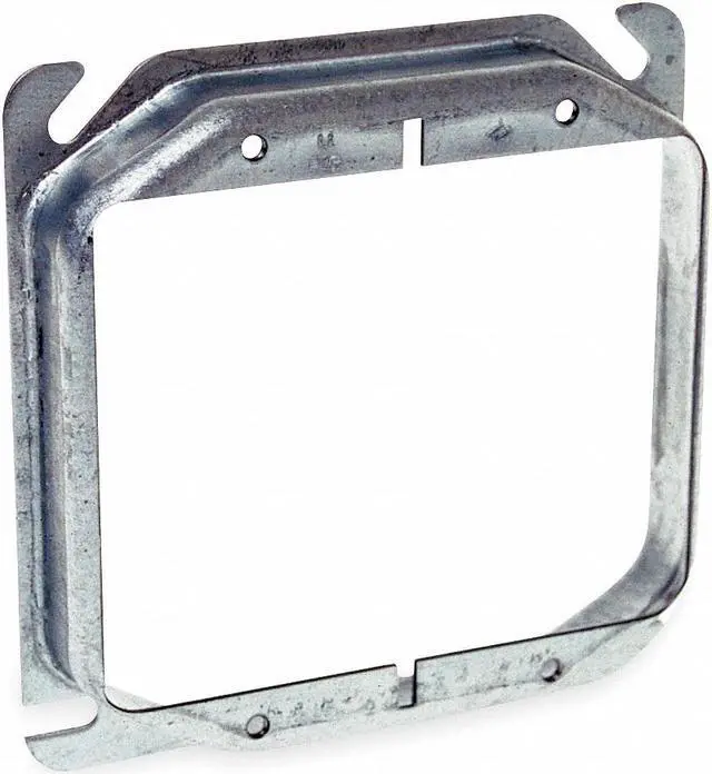 Double Gang Box Plaster Ring, Keyed For Plaster, Capacity 9.00 Cubic Inches, Center Blanked, with Tapped Ears, Material Galvanized Zinc, Raised 3/4 Inch, Length 4 Inches, Width 4 Inches. This item has been restricted from sale in the following state (s): []