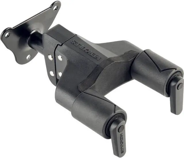 From the renowned brand Hercules Stands, the GSP39WB PLUS Series Universal Auto-Grip Steel Wall-Mount Guitar Hanger with Short Arm is a durable and sturdy solution for displaying and storing your prized guitars. This versatile guitar hanger is designed with an adjustable auto-swivel yoke that automatically rotates to accommodate a variety of guitar shapes and sizes, ensuring a secure and safe hold for both guitars and basses. Constructed with robust steel, this wall-mount guitar hanger offers long-lasting durability and stability. Its universal design makes it an ideal choice for musicians with a diverse collection of guitars.