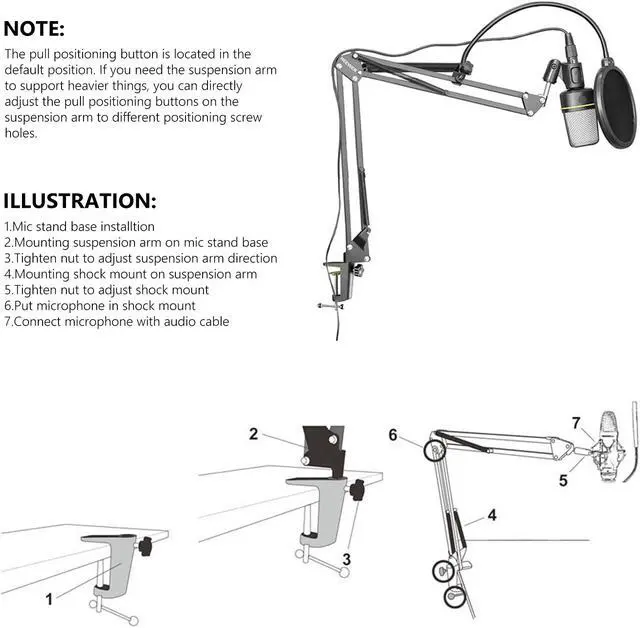 Pop Filter. NOTE: Microphone, Shock Mount and Audio Cable NOT INCLUDED NB-35 Mic Stand features solid steel construction and adjustable design. Can be easily adjusted to the suitable angle and height to show your perfect voice. *Max load: Approx 53oz / 1.5KG.