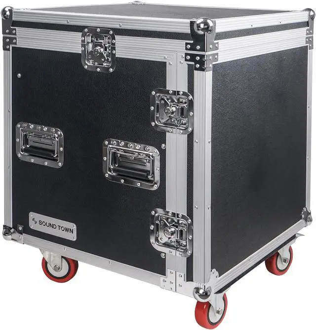 The Sound Town STMR-SP12UW shock mount rack case is designed to deliver maximum “on-the-go” protection for your PA and DJ gear. It features compressed polyethylene shock absorbing foam and is ideal to protect gear that comes with fragile LCD/LED display and disc drives. It has 12U rack space and 20” rackable depth. The front rack rail makes it easy to mount your rack mountable equipment. Better yet, the road case is built with heavy-duty plywood, industrial-grade latches and casters and keeps your equipment from bumps and bruises of lading in and out.