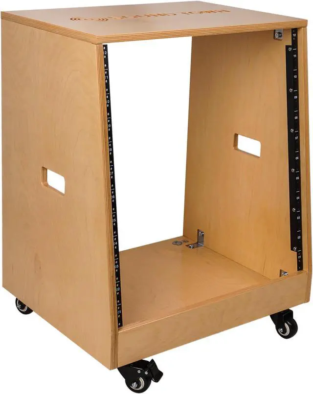 Sound Town DIY Slanted 12U Studio Rack, Plywood, Golden Oak, Rubber Feet, Casters (SDRK-12T)