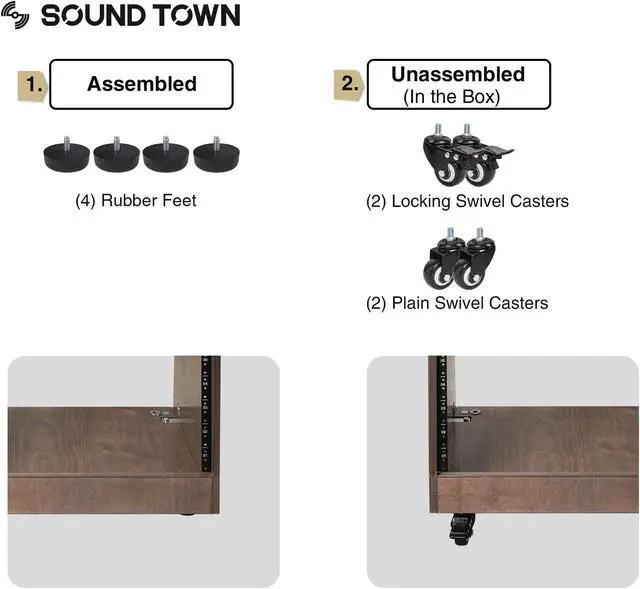 Rail screws are included in the package. Better yet, the rubber feet on the bottom keep it from slipping; There are also four rubberized casters included in the package with 2 of them coming with lever brakes; Once assembled, the case can be easily moved around.