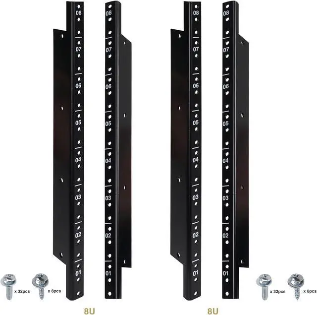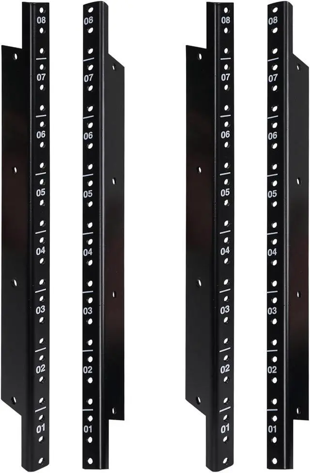 The Sound Town ST-RR-08UX2 is a 4-pack 8U rack rails that keep your pro audio gear level and organized. It is made from heavy-duty 3mm cold rolled steel and comes with a black powder coated finish. The rails come with printed numbers that make level installation easy. Better yet, screws are also included in the package.