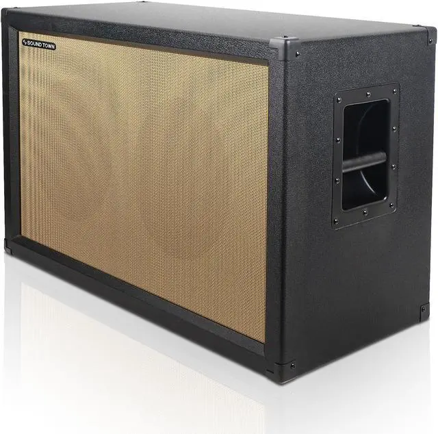 The Sound Town GUC212BK-EC is a dual 12“ empty guitar speaker cabinet. Constructed with top-quality materials, this guitar speaker cabinet is designed to withstand the rigors of serious gigging. The removable rear panels allow rear speaker loading. With handles on both sides, this cabinet is easy to transport.