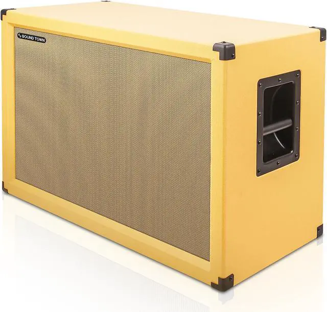 The Sound Town GUC212OR-EC is a dual 12“ empty guitar speaker cabinet. Constructed with top-quality materials, this guitar speaker cabinet is designed to withstand the rigors of serious gigging. The removable rear panels allow rear speaker loading. With handles on both sides, this cabinet is easy to transport.