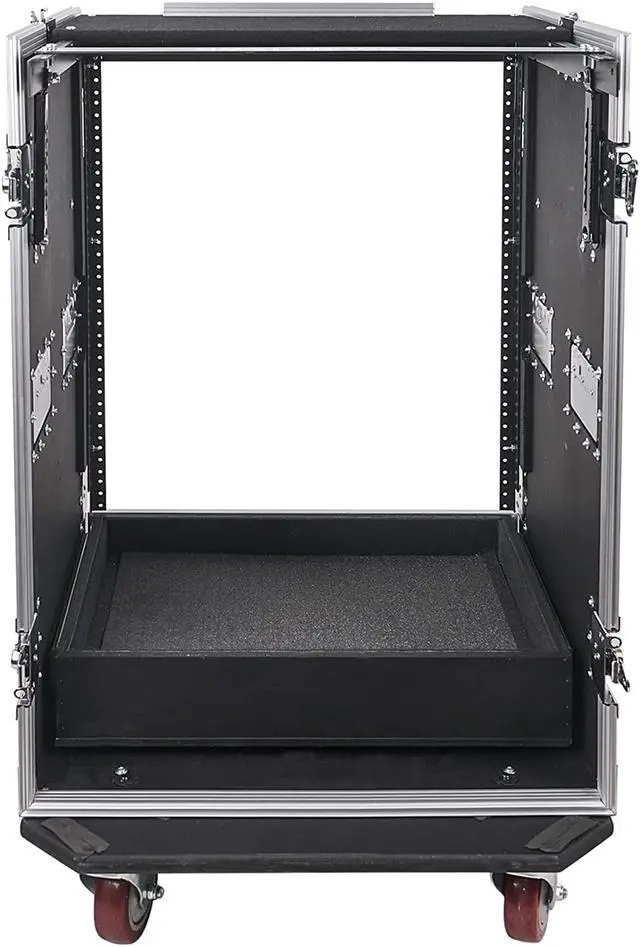 The 2U rack drawer has protection foam inside. It is perfect to hold your notebooks, tablets, microphones, cables and etc. With 20.2" depth and 19" standard width, it is compatible with a variety of power amplifiers, wireless microphone receivers and other PA equipment. The 11U slant mixer top allows you to mount your mixer on the top for easy control access. The MR-DR16UT2 also comes with four 4" casters, heavy-duty latches, rubber-gripped handles which allow the case to be easily moved around.