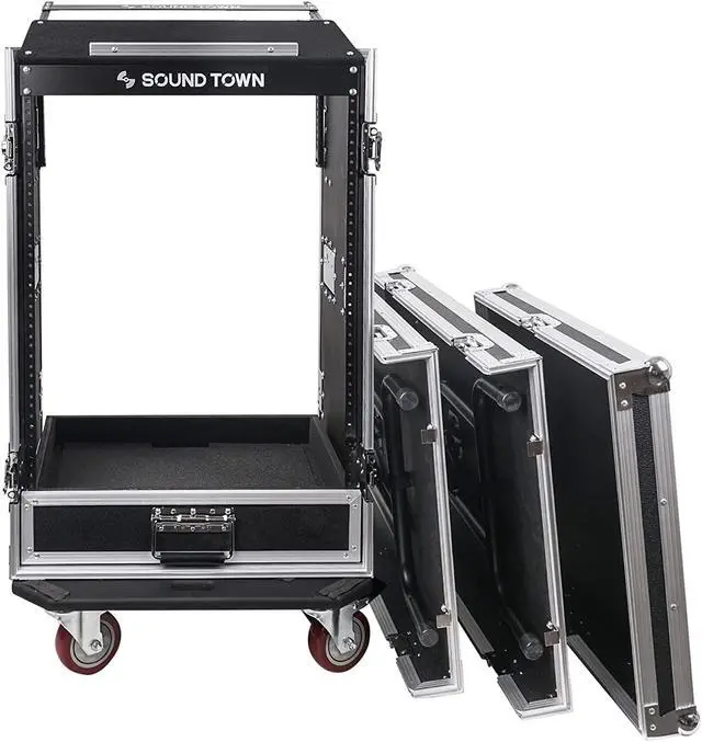 The Sound Town MR-DR16UT2 is a 16U flight case that features a rugged exterior, sturdy plywood construction and caster wheels. Besides the 14U bottom rack space, there is an extra 2U rack drawer at the bottom that can store small accessories, cables, microphones and keep your PA gear snug and safe. The case comes with heavy-duty plywood, industrial grade latches and keeps your equipment from bumps and bruises of lading in and out.
