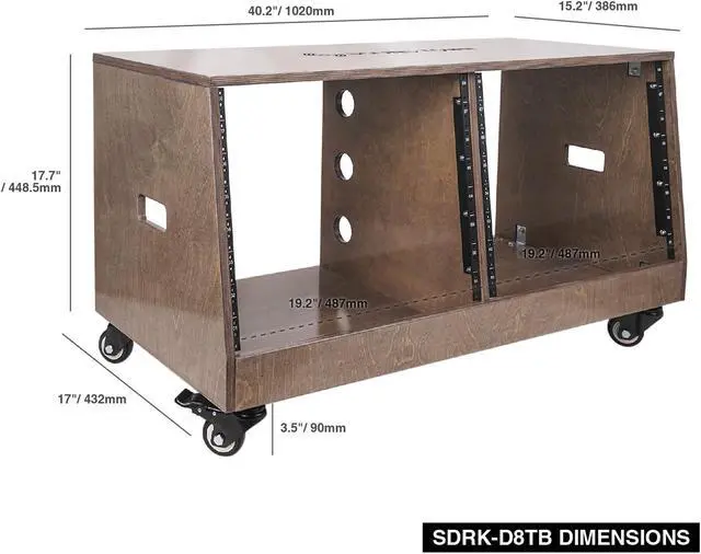 The Sound Town SDRK-D8TB is a double bay studio rack with 8U vertical rack space, 19“ width and up to 17” depth. This rugged case is built to hold amplifiers, wireless microphone receivers and other 19“ wide rack mountable equipment in your home or studio. The rack is made from top-quality plywood with unbeatable strength and durability. Finished in a beautiful weathered gray coat, it provides an attractive combination of function and style. Even better, the studio rack comes with slant design for easy equipment operation .