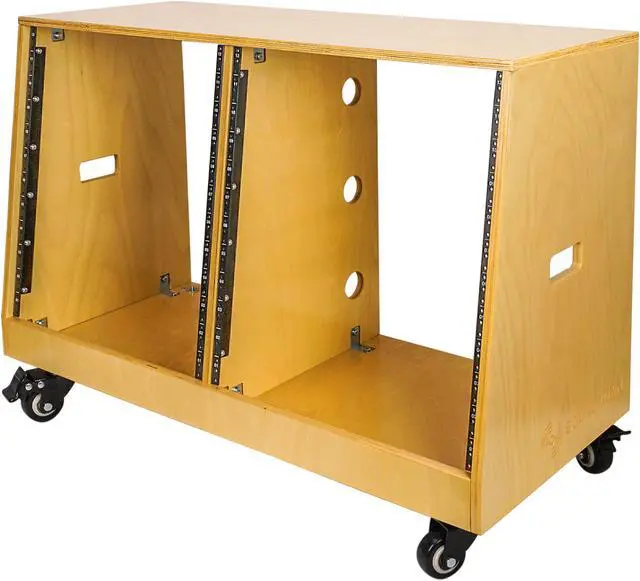 Sound Town DIY 2 x 12U Slanted Studio Rack with Baltic Birch Plywood, Casters, Golden Oak for Recording Room, Home Studio (SDRK-D12T)