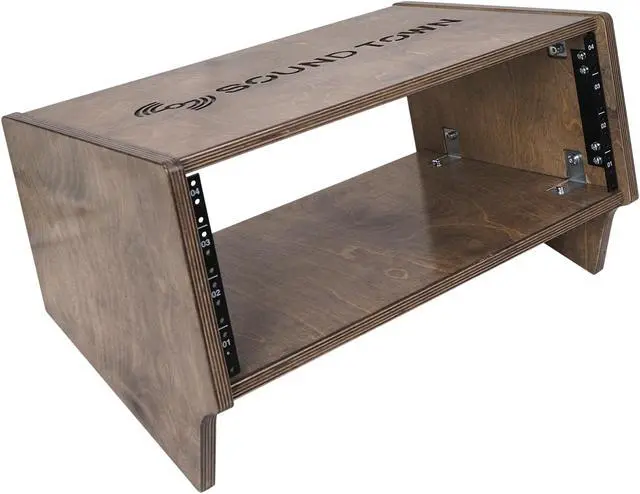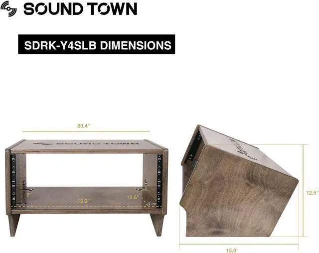 The Sound Town SDRK-Y4SLB is a studio rack with 4U angled rack space, 19 width and 12 depth. The panels are made from top-quality plywood, finished with a beautiful weathered gray coat and can be easily assembled. The 20-degree slanted face makes it easy to move in and out the equipment. If youre in the market for an affordable studio rack and you enjoy hands-on builds, the Sound Town SDRK-Y4SLB case kit is the perfect option. This rugged case is built to hold amplifiers, wireless microphone receivers and other 19 wide rack mountable equipment in your home or studio.