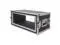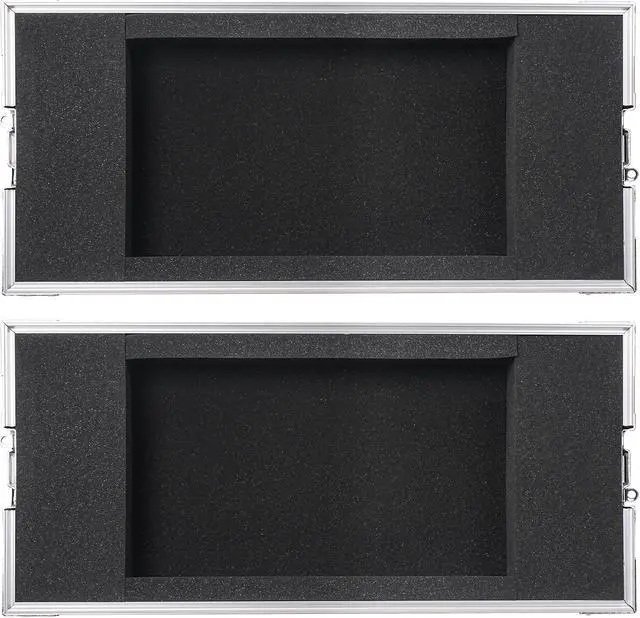 The black laminate gives the flight case a sleek look. It’s easy to move around the case with its heavy-duty twist latches and rubber-gripped spring handles.
