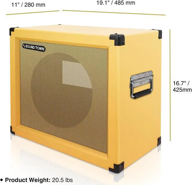 The Sound Town GUC112OBOR-EC is a 12 empty open-back guitar speaker cabinet. Constructed with top-quality materials, this guitar speaker cabinet is designed to handle heavy touring. It is compatible with both Celestion and Eminence speakers and its open-back design offers detailed tone, airy bass and a wide sonic spread. The removable rear panel allows rear speaker loading. With a carry handle on the top, this cabinet is easy to transport.