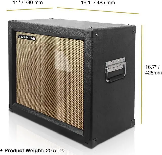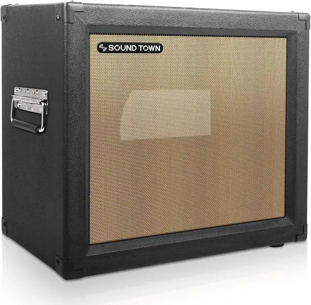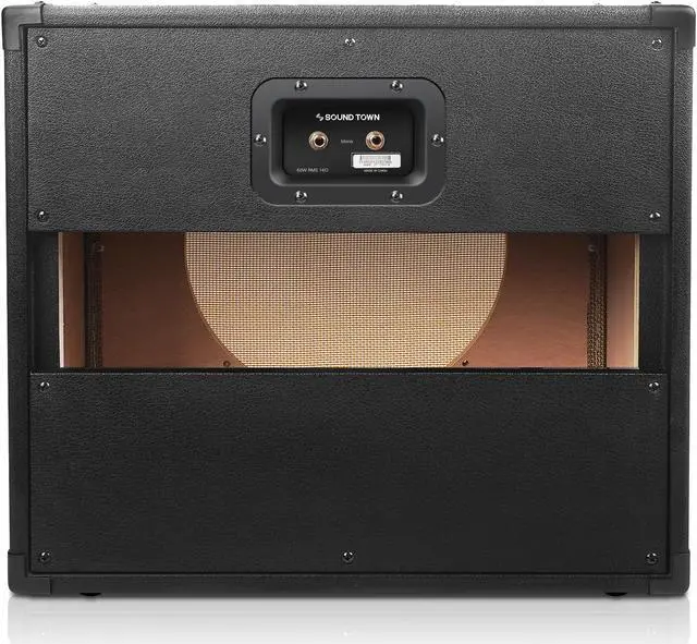 The Sound Town GUC112OBBK-EC is a 12 empty open-back guitar speaker cabinet. Constructed with top-quality materials, this guitar speaker cabinet is designed to handle heavy touring. It is compatible with both Celestion and Eminence speakers and its open-back design offers detailed tone, airy bass and a wide sonic spread. The removable rear panel allows rear speaker loading. With rubber-gripped handles on both sides, this cabinet is easy to transport.