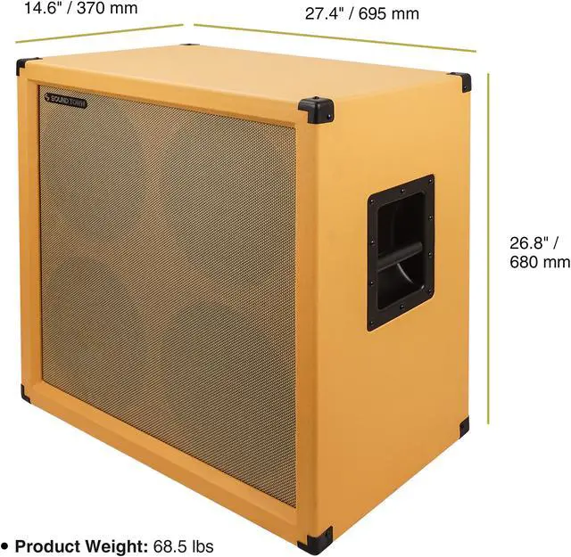With robust birch plywood construction, this guitar speaker cabinet withstands the rigors of heavy touring. The orange textured exterior provides a professional and stage-ready look. Two ergonomic handles make it easy to transport.