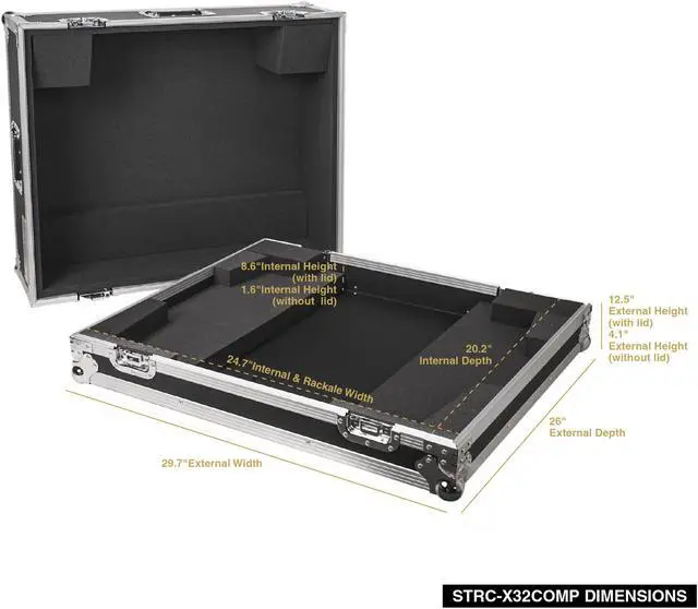 The Sound Town STRC-X32COMP is an ATA mixer case designed to fit and protect the Behringer X32 Compact digital mixer. With its robust 9mm plywood construction, the STRC-X32COMP safeguards your mixer while you are on the go. Fortified with recessed twist latches and interior foam protection, the flight case gives your X32 Compact mixer the ultimate protection it deserves.