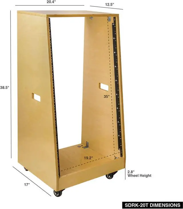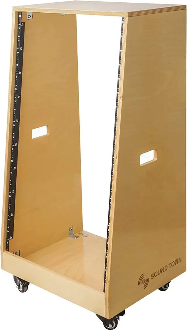 Sound Town DIY Slanted 20U Studio Rack, Plywood, Golden Oak, with Rubber Feet, Casters (SDRK-20T)