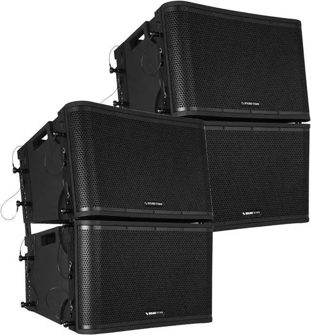 The Sound Town ZETHUS-112B comes with multiple flying points, providing a wide range of mounting or suspension choices. The ZETHUS-112FF flying frame (sold separately) enables you to combine up to 12 speakers for various setups. Ideal for small to medium-sized venues such as stages, lounges, clubs, bars, restaurants, churches, and schools, the ZETHUS-112B line array system delivers exceptional performance.