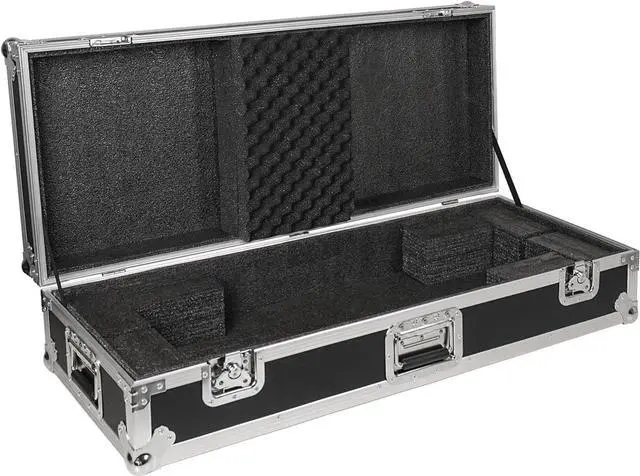 The keyboard cases high-density foam interior perfectly accommodates your keyboard, while the durable 3/8-inch laminated plywood frame is more than capable of weathering the rigors of the road. Beyond that, the steel ball corners, butterfly twist lock latches and chrome plated hardware keep your case firmly shut and reduce shock from bumps.