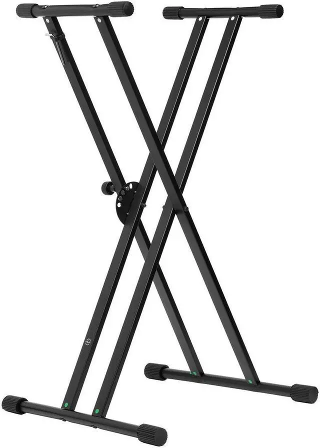 While ensuring the optimal ergonomic height for your musical keyboard, the H&A Double-X Keyboard Stand with Easy Lock provides a robust and reliable solution for both performance and storage needs. This stand boasts a user-friendly crossbar design, offering seven lockable positions that can be securely fastened with a built-in clutch locking mechanism. This versatile feature allows for precise height adjustments, enabling you to achieve the most comfortable and efficient playing position. Constructed from a welded steel alloy, this stand guarantees exceptional strength and longevity. Its sleek black finish not only enhances its aesthetic appeal but also adds an extra layer of durability.